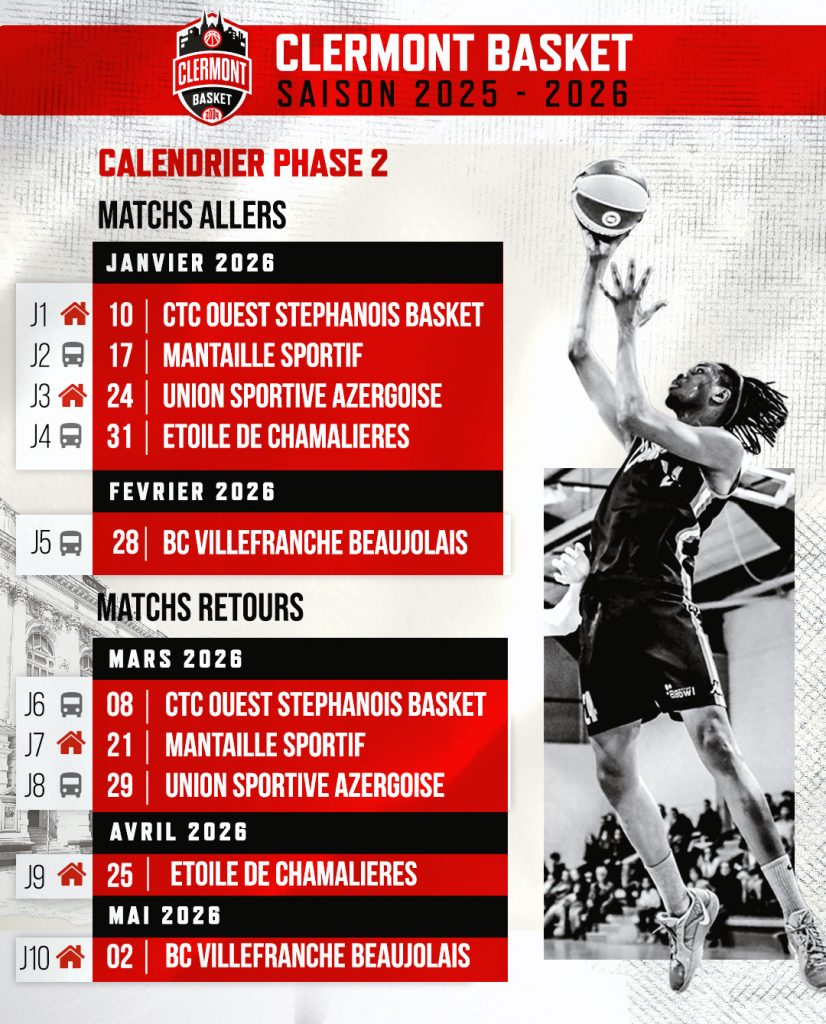 🎯 Lors de cette phase 2, composée de 10 rencontres plusieurs perspectives s’offrent aux Clermontois :